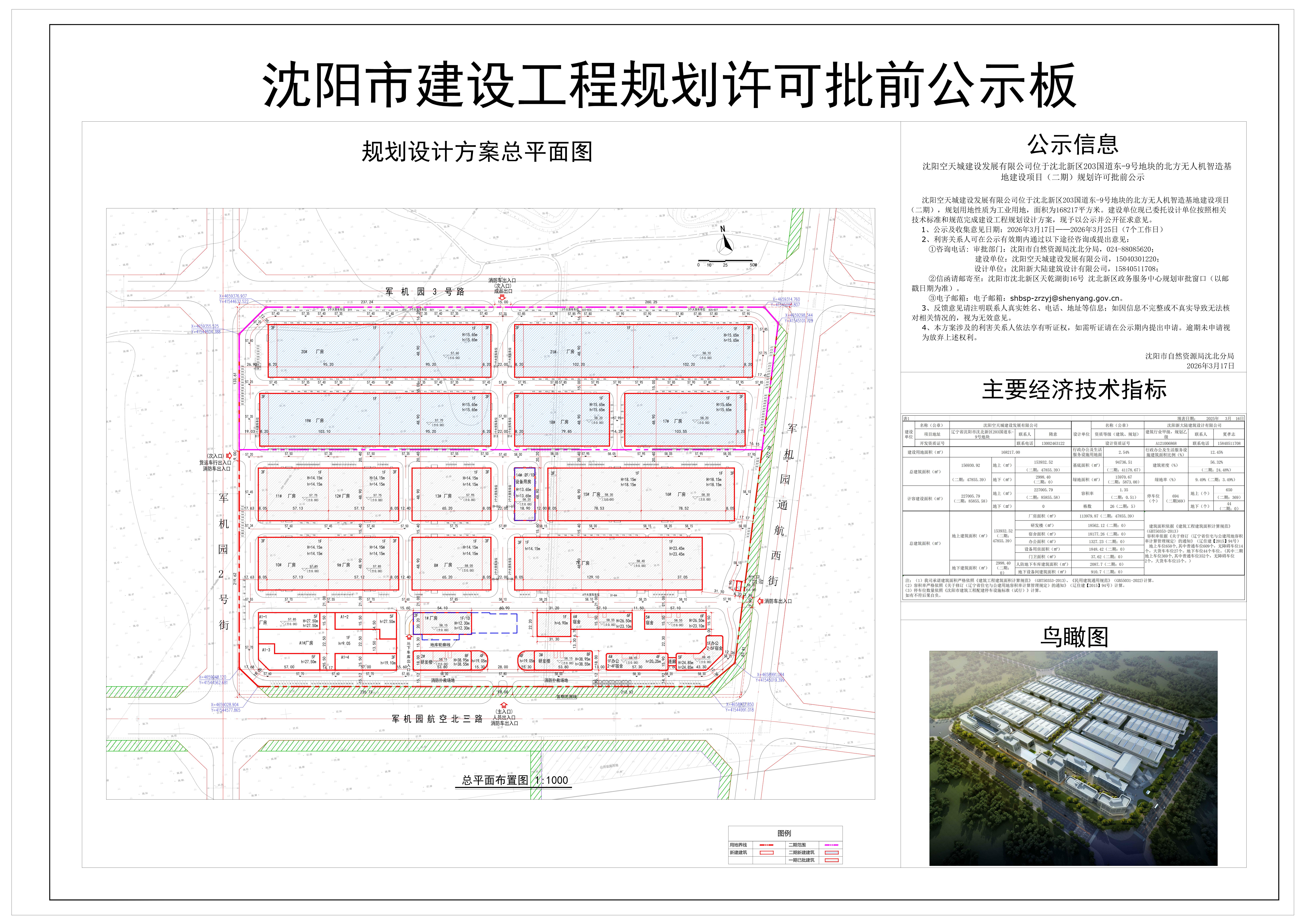 ******有限公司位于沈北新區(qū)203國道東-9號(hào)地塊的北方無人機(jī)智造基地建設(shè)項(xiàng)目(二期),規(guī)劃用地性質(zhì)為工業(yè)用地,面積為168217平方米。建設(shè)單位現(xiàn)已委托設(shè)計(jì)單位按照相關(guān)技術(shù)標(biāo)準(zhǔn)和規(guī)范完成建設(shè)工程規(guī)劃設(shè)計(jì)方案,現(xiàn)予以公示并公開征求意見。